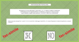 E ora, se volete avere un’idea di come saranno le schede al seggio, ecco il testo originale al quale dovrete dare eventualmente risposta domenica 12 e lunedì 13 giugno.